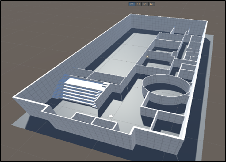 After much research, it was decided that the Unity game engine [12] would be used instead of the Unreal engine. Unity has a range of VR tools and packages built-in, making native use of a VR project with Unity a straightforward process. To create the realistic structure of the Confirm building, advanced 3D modelling software would be required to achieve this. This is where Unity pro-builder was used. Unity pro-builder is a built-in software within the Unity game engine that allows the advanced placement of 3D objects within a virtual environment within Unity. The pro-builder tool provides the user with a range of extra 3D objects with a range of added controls to allow the user to get greater details with their designs. It also creates 3D objects with the required physics pre-attached to save the user from having to apply such colliders themselves